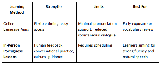 In-Person Portuguese Lessons Strengthen Memory Through Real Interaction