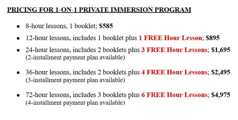We offer ESL Immersion Programs in 1 on 1 private lessons and small group classes. These programs offer: